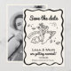 Whimsical och rolig Låt oss lyfta med detta roliga spara datumet bröllopsinbjudan. Med en duo som lyfter.