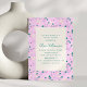 A playful and charming bridal shower invitation featuring a sweet strawberry and floral pattern on a soft lavender background. The cheerful pastel palette gives it a fresh, lighthearted feel—perfect for a spring or summer brunch celebration. A lovely choice for brides who love cottagecore, garden, or tea party themes.