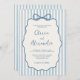 Whimsical Stripe Bow Dusty Blue Ivory Wedding Inbjudningar