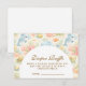 A whimsical watercolor design featuring a playful mix of pastel summer animals surrounded by tropical leaves, seashells, starfish, and soft botanical details. The cheerful palette of peach, mint, coral, and soft blue creates a light storybook atmosphere, while the elegant arch layout keeps the celebration details beautifully framed and easy to read. Perfect for a warm, joyful summer celebration with a charming nursery aesthetic.