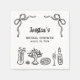 Handritade redigerbara bröllopsfestservetter med två slingor, mat och dryck. Denna whimsical svarta bröllopsfestservett har också handskrivna typsnitt.