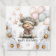 Celebrate the joy of new beginnings with this charming baby shower design featuring a cuddly teddy bear in a floral headband, nestled among cheerful daisies and pastel balloons. Soft colors and starry accents create a dreamy, gender-neutral theme perfect for invitations, party décor, and keepsakes. Customizable for any baby celebration, this sweet illustration brings warmth and whimsy to every detail.