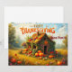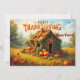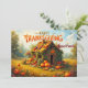Celebrate the season of gratitude with this charming Thanksgiving greeting card. The artwork depicts a whimsical little house made entirely of vegetables and fruits—pumpkins, eggplants, cucumbers, corn, apples, pears, peaches, cherries, and fresh herbs—nestled among grass and flowers in an impressionist oil painting style. Across the scene, bold festive calligraphy declares “HAPPY THANKSGIVING,” making this design both playful and heartwarming. Perfect for sharing holiday cheer with friends and family, this card combines creativity, color, and the true spirit of Thanksgiving.