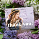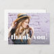 Ett enkelt och visstiskt tack från studenten som du har på vykortet innehåller vit typografi och ett fullt på framsidan, och ett tack som du skickar med returadress på baksidan.