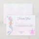 Send a sweet note of gratitude with this minimalist Under the Sea mermaid birthday thank you card. Featuring a cute script “Thank You” on a crisp pastel watercolor background, this design highlights a whimsical watercolor mermaid alongside a playful octopus for just the right touch of ocean charm.