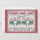 Sprid helgdag cheer med detta platta visitkort med en vintage-stil-skylt av typen "Candy cane Lane" som är försedd med bågtäckta polkagrisar mot bakgrund av rött pladat. Anpassa baksidan med din egen anpassningsbar Julhälsningar för en tankfull, charmerande beröring. Perfekt för att skicka till familj, vänner eller kolleger för att göra säsongen ljusare med det klassiska helgdag stollig.