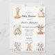 Denna inbjudan har en förtjusande baby shower-design med söta djurillustrationer, som en giraff, björn, kanin och mer, arrangerade charmigt runt texten. Djuren ger en lekfull och hjärtlig stämning, vilket gör det perfekt för att fira detta glada tillfälle. Med sin mjuka färgpalett och fantasifulla illustrationer utstrålar designen värme och charm. 🌟🐾