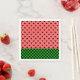 Den vimska napkin har rosa och svart vattenmelonhjärtan mönster med mörk grönt schackbrädet grund gräns.