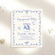 Set the tone for an unforgettable and joyful celebration with this charming light cream engagement party invitation featuring a french blue wavy frame, hand-drawn bows, and playful script lettering. The cheerful toasting wine glasses add a fun, festive touch, creating the perfect blend of romantic and whimsical style. NOTE: This budget-friendly paper is similar in weight to photo paper -- a larger and thicker 5x7 traditional card stock version is also available (message us for the link).