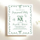 Set the tone for a joyful celebration with this charming retro-inspired engagement party invitation featuring a green wavy frame, hand-drawn bows, and playful green script lettering. The toasting wine glasses add a fun, festive touch, creating the perfect blend of romantic and whimsical style. NOTE: This budget-friendly paper is similar in weight to photo paper -- a larger and thicker 5x7 traditional card stock version is also available (message us for the link).