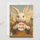 Fall in love with this charming and unique take on the White Rabbit from Alice in Wonderland! This delightful illustration portrays a cute, anthropomorphic white rabbit seated at a rustic table, holding a heart-adorned invitation or card. Dressed in a whimsical red and green outfit, he's ready for a tea party in an enchanting landscape dotted with fairytale castles, colorful banners, and blooming flowers. Teacups and a cake complete this sweet and imaginative scene, perfect for fans of Alice in Wonderland and anyone who adores whimsical, heart-filled art.