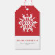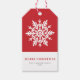 Add a festive touch to your holiday gifts with this whimsical snowflake gift tag. Featuring a playful white snowflake centered on a bold red background, this design captures the spirit of winter and Christmas. It’s perfect for pairing with seasonal wrapping paper or gift bags. Customize with your name or message to make each present feel extra thoughtful. Available in other background colors to match your holiday theme.