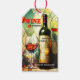 A whimsical Christmas gift tag featuring a painting of a wine glass and bottle. Beautiful for a wine lover.