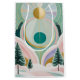 Den här fantastiska konstverken transporterar dig till en serenvintern under underlandet, som badas i en underbar palett av pastellblått, mjuk rosa, mild lila och serenfärgad grönt, som alla är accentuerade med skakande guld. Tre charmerande träd står på ett skoningslöst sätt mitt i ett känsligt snöfall, deras grenar dammsugs lätt av de drömliknande nyheterna. Ovanför kastar en stiliserad sol, försedd med mönster, en varm, viskös glöd över himmel och fullbordar detta magiska och fantasifulla snö landskap. Det är ett biet som framkallar känslor av fred, och nostalgiska barndomsdrömmar.