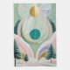 Den här fantastiska konstverken transporterar dig till en serenvintern under underlandet, som badas i en underbar palett av pastellblått, mjuk rosa, mild lila och serenfärgad grönt, som alla är accentuerade med skakande guld. Tre charmerande träd står på ett skoningslöst sätt mitt i ett känsligt snöfall, deras grenar dammsugs lätt av de drömliknande nyheterna. Ovanför kastar en stiliserad sol, försedd med mönster, en varm, viskös glöd över himmel och fullbordar detta magiska och fantasifulla snö landskap. Det är ett biet som framkallar känslor av fred, och nostalgiska barndomsdrömmar.