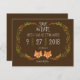 Denna charmanta bröllopsinbjudan samling presenterar ett välklätt rävpar omgivet av en krans av handritade blad i ett rustikt kransarrangemang.