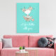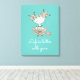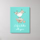 Whimsical illustration med tjej med hårbollar säkrade med stickor som lindar en garnboll. "Livet är bättre med garn" vit text på turkos bakgrund