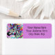 Whimsical Zebra Blommigt Rosa Teal Grönt Daisy Returadress Etikett