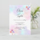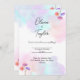 Önska dina gäster med dessa vita inbjudningar till rosa och blåfärgat bröllop. De har en mjuk pastellpalett och en drömmande penseldesign och är perfekt för romantik, boho eller kustnära firande. Anpassa enkelt till din perfekt.