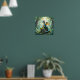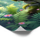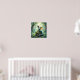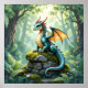 Dragon Temed poster för pojkens rum. En liten drake, som återges i ett detaljerat exempel på vattenfärg i stil, kissar på ett gammalt stenfall som är övertäckt. Solljusfilter genom den täta skogskålen, som tänder dammmotorer som dansar i luft. Dronens skalor kryper med irider och ögon har en mjuk, vetande, roligt fantasykonst.