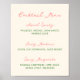 En vit cocktail-meny poster i en roligt och en lekfull handskriven stil. Poster kommer in i en härlig färg-plan av grönt och korall i skogen, som framkallar känslor av natur, värme och lycka. Dessa färg kompletterar perfekt den lekfulla utformningen och ytterligare förbättrar festimodet i tillfälle.