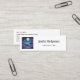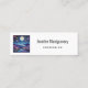 Mini-affärskort med en vacker illustration. Vit och fantasifull vibe. En stor glödande måne med stjärnor överallt. Hängande över ett vackert landskap i träd, berg och en likviderande flod.