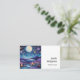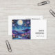 Affärskort med en vacker illustration. Vit och fantasifull vibe. En stor glödande måne med stjärnor överallt. Hängande över ett vackert landskap i träd, berg och en likviderande flod. Fantastisk magisk mystisk vibe.