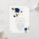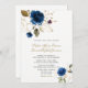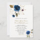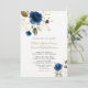 Whimsique Blue Guld Flowers Monogram Bröllop Inbjudningar