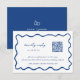 Whimsical hand plockade vågigt rad ram, QR-kodkort för bröllop OSA. Fransk Royal Blåtypografi med hand plockade bildaccenter och motsvarande helblått underlag. Du kan anpassa typsnitt och inslag färg genom att klicka på funktionen "redigera med hjälp av verktyg".