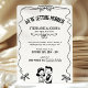 Den här svarta och vita bröllopsinbjudan har en lekfull ribbon gräns med små bögar och en charmerande tecknad-stil brud och groomillustration vid grund. Den rena hand plockade-layouten lämnar rum för namn, datum och plats, medan varje inslag i dockteckningen kan färgas om för att matcha ditt bröllop-tema. Perfekt för par som kärlek är en roligt än elegant vibe, det är idealiskt för avslappnad firande, intim bröllop och element. Anpassa enkelt texten med dina uppgifter och kontakta mig om du vill matcha delar för att skapa en samordnad svit.