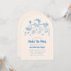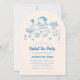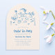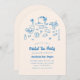 Den här charmerande blått och grädde inbjudningskort för möhippan bygger på den populära, handdragna trenden som präglar Fransk eller italienska stil-livsmedel och -drycker i ett vismiskt, doodlat och klokt stil. Den här designen är perfekt för en möhippa brunch eller te party. Det illustrerar hand plockade med ett vas av blommor, kakor, te kopp, tekruka, kroissanter, jordgubbar, knivar och gaffel samt stekhållare. Den här inbjudan kommer som standard i en skiftformsdel, men du kan också ändra den till andra former.