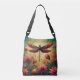Whimsique Dragonfly Blommigt Abstrakt Art Teal Ros Axelväska