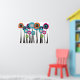 Whimiscal Flowers Art Poster IV, ljusa, feta, färgstarka blommor i fuschia, ljusblått, kalkgrönt, orange och rött med svarta stjälkar.
