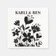 Det här är en charmig och djärv napkin med kluster av vita blommor. Renderad i fast svart mot en ren vit bakgrund. Blommorna är mycket stiliserade med en lekfull mängd former och storlekar: Vissa har enkla, rundade blad, medan andra är mer klockformade. Många har långa, framstående frimärken med små prickar på topparna, vilket ökar deras fantastiska karaktär. Sammansättningen innehåller olika former av blommigt, från klassiska daisy-liknande former till en unik, prickad pod-liknande blomma på högerna. Blommorna och deras enkla stjälkar och löv vår från en enda bit av marken, som skapar en känsla av en liten, förtrollad trädgård. Den totala effekten är modernt, rent och glädjande kreativ.
