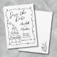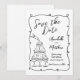 Hand plockade Roligt Swirling Ram sparar datumkortet. Det här visuella och kreativ-spara datumkortet är perfekt för par att tittar att ange en lekfull, ljusare ton för det kommande bröllop. Designat i klassiskt svartvitt visar kortet ett snurrande ram med charmerande hjärtedetaljer som omger informationen om bröllop, som presenteras i en härlig blandning av skript och handskrivet stil typsnitt för en avslappnad som eleganten känner. I det lämnat hörnet i grund ger en roligt illustration av ett champagneglas torn med en champagne flaska som häller bubblor över toppen en en livlig och berömmande beröring. Denna krångliga detaljrikedom paras med det snurrande ram för att skapa en unik och minnesvärd utformning. Kortets baksida har en söt accent, ett handskrivet monogram av parets initialer tillsammans med en charmerande skiss av en champagne flaska och glas som binder ihop temat. Helt anpassade, den här utformningen är perfekt för par som vill ha något trendig, snyggt och som sprider sig med personlighet. Finns i en utskriven version eller som en hämtningsbar digital fil för enkel delning eller lokal utskrift.