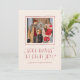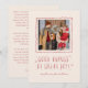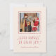 En religiösa julfotokort med "Bra tidningar av underbar glädje"-text i ett handskrivet teckensnitt, omgiven av handritade doodlar för ett vismiskt utseende. Kortets baksida har plats för ett längre meddelande.