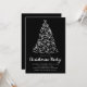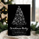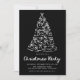 Värd en chic helgdag som samlas med julfestinbjudan med en vit, vit, vit träd med krukor på en svag svart bakgrund. "Jul Party" är skrivet med vitt skript, medan händelseinformationen presenteras i koordinerande vit text. På baksidan finns en enkel buckaccent som skapar en dramatisk men förfinad helgdag.