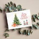 säsongens värme med det här charmerande julkortet i en vintage vattenfärg stil. Utformningen har ett vackert dekorerat Julgran med en gyllene stjärna, omgiven av gåvor, och med små, vita ben. Med sitt mjuka, vattenfärgade struktur och elegant, handmålade utseende, fångar detta kort den tidlösa magin från jul - perfekt för att skicka hjärtligt önskemål till familj, vänner och kära under julhelgen.