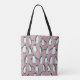 Den här söta toteväskan har en svart och vit penguin mönster i hand plockade på en medelstor dammig fuchsibakgrund. Penguin bilder är kontrasterad med lätt orange på fötter, huvud och bröst. De visas på flera ställen, och några utspridda snöflingor faller bland dem. Absolut unik! Båda sidor av påsen har samma utformning.
