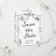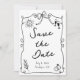Höj bröllop med en roligt och blanka svarta och vita spara det datum som innehåller nyfikna men romantiska illustrationer av vin, disco boll och bröllop ringar.