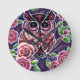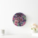 Whimsique Uggla på Blommar Gren Rosa Blue Rund Klocka