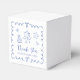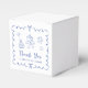 Kute pojke-duschdosor med en vågigt blå ram, präglad med krukor, vismliknande handritade illustrationer av hjärtan, stjärnor, kakor och daglig dekoration, och "Tack" i ett lekfullt blått skript.