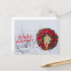 Den vita helgdag har bildskärmsbilder av vintage skolflicka som går på färgstarka helgdag poinsettia-andetag med bakgrunden från snövit träd och Glad helg-röd text