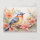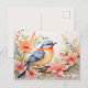 Whimsique Watercolor Bird Blommigt Art Vykort