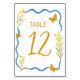 Följ med dina gäster med det här bordsnumret, en del av vår vita sommarsvit. Den här designen har fladderande fjärilar för orange, glada jokerblommor för gult och en blomstrande blå gräns - perfekt för utomhusceremonier och trädgårdsmottagningar. Teckensnittet för lekfull men elegant är enkelt att läsa från en avstånd, medan teckningen tillför en ny, glatt tryckning till tabellutrymmena. Idealisk för naturinspirerad bröllop, vår eller sommartid. Anpassa till bordsnumren och koppla med matchande inbjudningar och signering.