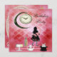 Söt rosa Alice i underlandsövningen party inbjudningskort för flickor och kvinnor i alla åldrar - Whimsical, söt och vacker, surreal Alice i underlandet med en svart vintage av Alice med en elegant rosa flamingo. Hon står överst på en rosa trapphus bredvid en måne-ornament med guld-crescerande hölje med en klocka hängande från den. På trappan står "Jag är sen till ett mycket viktigt datum". På trappan står också en vit söt tekanna, en tårta på ett stativ, en söt dryck på mig flaska och en vit kanin i en svart galen haters top hat. På andra sidan är inbjudningskortet ett vitt vackert snöre och pärlmatte med rosa ros för att du ska kunna anpassa dig med din händelseinformation, den vita kaninalaladen, drottning av hjärtan som spelkort, guld fickur och ett sylt-hjärtslag. Snyggt, modern, chic, glamorös fantasinbjudning. Om du behöver hjälp med att anpassa din produkt kan du kontakta mig genom min butik och jag kommer att vara lycklig hjälp. Pearls och snöre mat på andra sidan inbjudningskortet ©Hazel Kinvig-Paul www.design-a-dream.co.uk Alla inbjudningar på Zazzle har platta tryckta bilder.