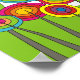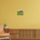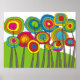 Den vita blombilden Poster i starkt fet färg. Funky blommor, i färg av grönt, gult, orange, ljusblått och rött.