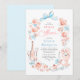 Fira den blivande bruden med denna Grandmillennial-inspirerade bröllopsfest-inbjudan, som perfekt fångar den "nya traditionalistiska" estetiken som definierar modern romantik. Denna lyxiga design har en delikat, handmålad akvarellblomsterkrans i en mjuk palett av rosa och ljusblått. Designens mittpunkt är en signerande ljusblå coquette-slinga, ett trendigt motiv som tillför en touch av vintage-inspirerad, hyperfeminint charm. Den lekfulla layouten är prydd med specialdesignade, skissbok-stil illustrationer, inklusive en kyld flaska champagne, eleganta glas, en flerskiktig tårta och en klassisk vas i rokokostil. Dessa konstnärliga detaljer frammanar den sofistikerade atmosfären på en intim trädgårdsfest eller en chic kustlunch. För att balansera konstnärskapet är dramatisk, svungande kalligrafi för rubriken "Shower" parat med ren, modern typografi för evenemangets detaljer, vilket säkerställer enkel läsbarhet. Oavsett om du är värd för en lyxig tebjudning