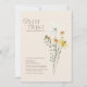 Viktig Daisy Plot Twist Bröllop spara datum Card - Väg upp din boho bröllop vision med denna minimalistiska blommigt. Med vildblomstaccenter, daisy blommor, gula blommor och mjuk grönsak accentueras denna vinliknande botaniska design med fladderande fjärilar för ett eteriskt vibum.