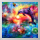 Whimsisk delfinskalk vid kustnära Nautisk Blommigt Poster